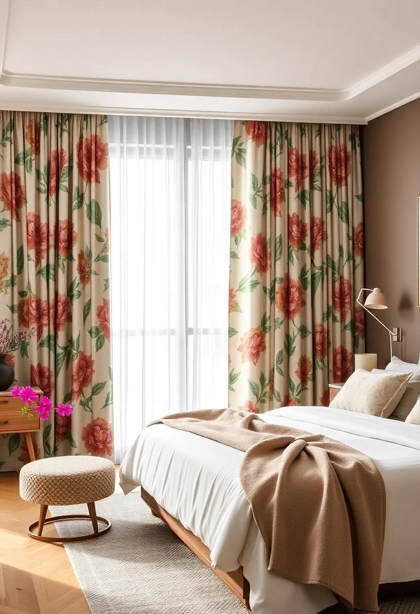 Imagine stepping into your bedroom and feeling immediately connected to nature with vibrant floral patterns dancing across your curtains. These designs not only infuse life into your space but also create a playful energy that can uplift your mood. Consider incorporating delicate pastels for a soft touch or bold hues for a striking statement. Pairing pleats with floral motifs provides a sophisticated texture that enhances the fabric’s movement, allowing it to elegantly frame your windows while ensuring that your decor remains chic and inviting.