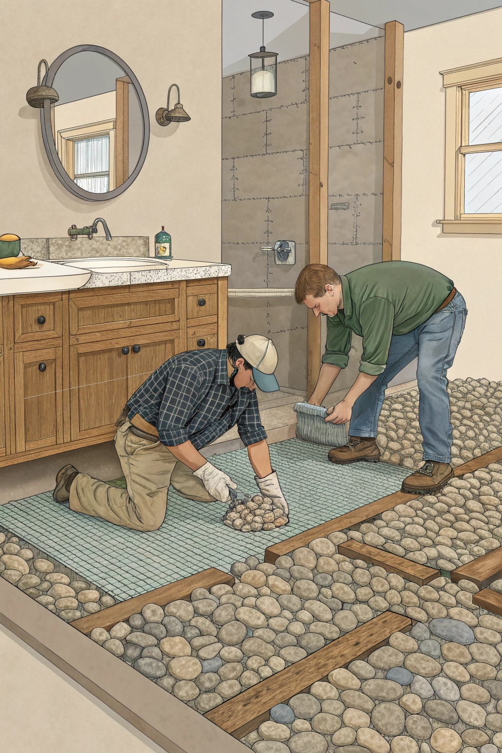 While visually striking, stone and pebble floors require more effort to clean and maintain. Weigh these factors carefully when selecting your flooring.