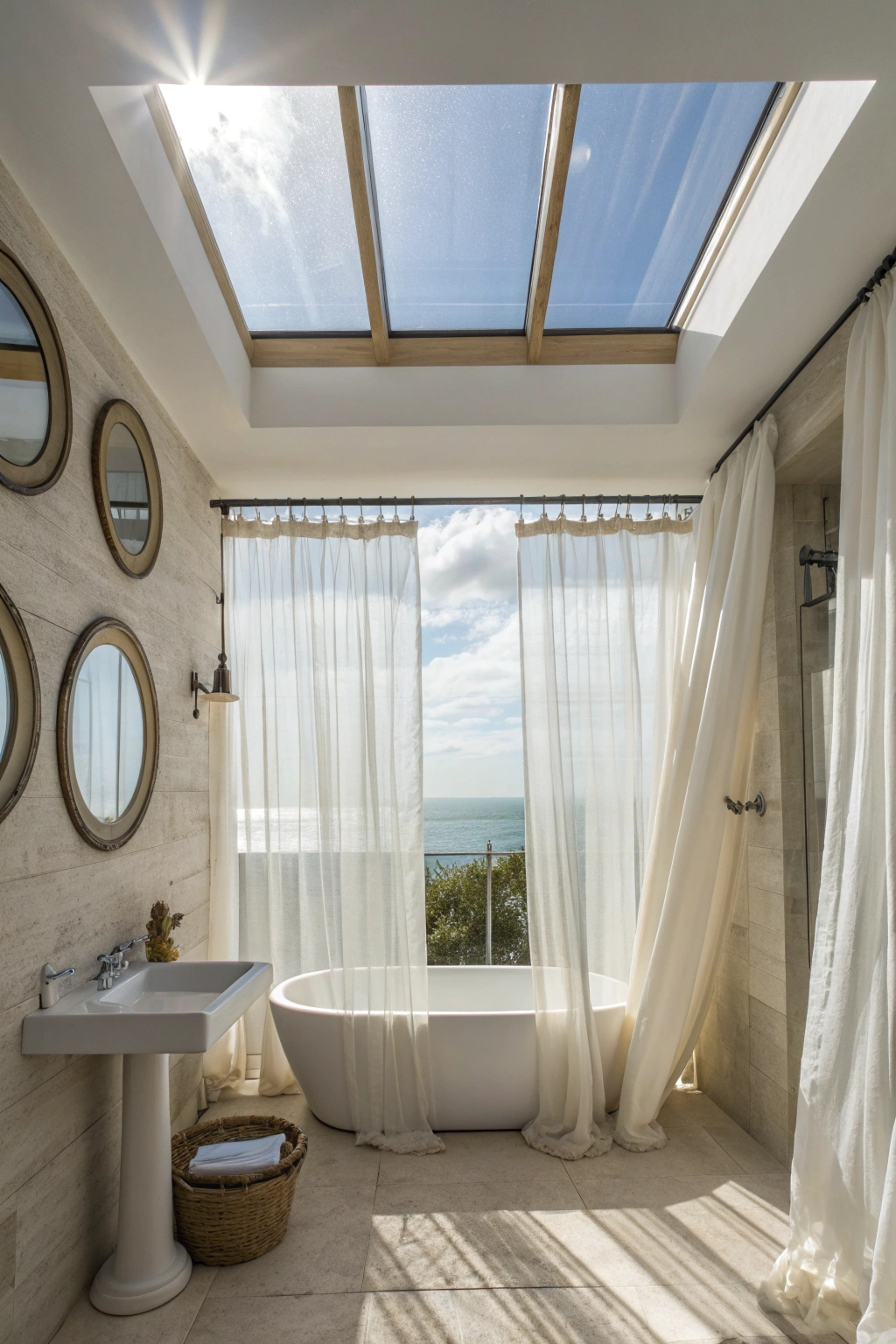 Opt for sheer curtains or light-filtering blinds that allow sunlight to gently diffuse into the room, enhancing the coastal ambiance.