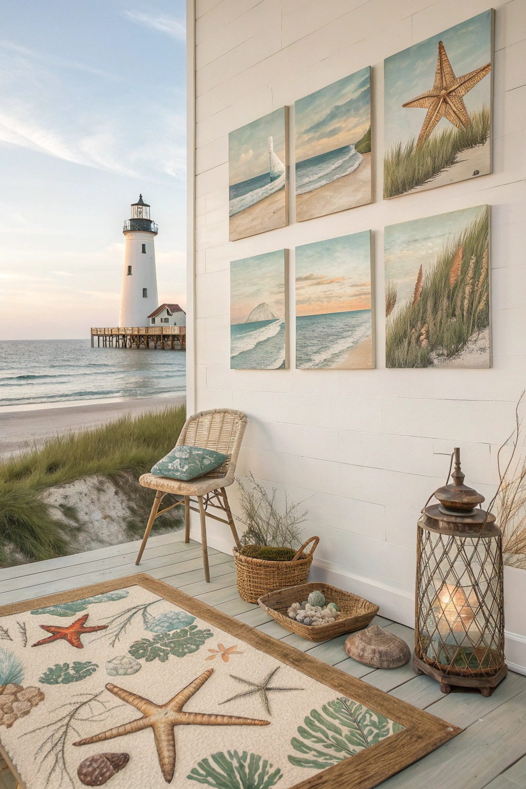 Pendant lamps, wall sconces, and lantern-style lights featuring natural materials like rope or driftwood complement coastal decor beautifully, creating an inviting atmosphere.
