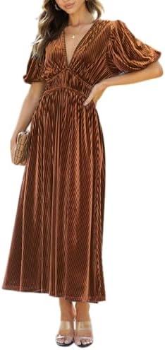This exquisite formal dress combines luxurious velvet with an elegant design, making it a perfect choice for winter weddings or other formal gatherings. Featuring a plunge v-neckline secured by invisible buttons, this dress accentuates the waist with a double elastic waistband and draws attention with its long flowing maxi length. The soft, breathable fabric not only feels fabulous against the skin but also provides natural warmth, making it well-suited for chilly evening events. With a variety of colors available, you can easily find one that matches your personal style or the theme of the occasion.