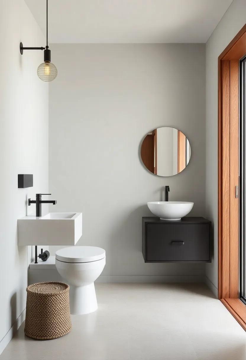 When choosing fittings, focus on items that emphasize geometry and industrial aesthetics. Light fixtures made from metals like brass or blackened steel can complement the bathroom’s overall look while providing essential lighting. For flooring, consider tiles that are easy to clean and can visually expand the space, such as large-format porcelain tiles. Pair these choices with cabinetry that features minimalist hardware, maintaining an uncluttered feel. The ultimate goal is to create a cohesive design where each piece not only serves its purpose but also contributes to the overall elegance of the small space.