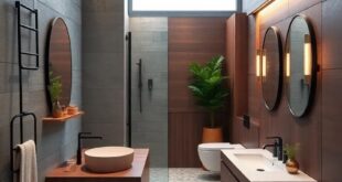 Integrating these palettes thoughtfully can transform your bathroom into a serene oasis while amplifying the warmth and elegance that natural wood brings.By combining different textures and tones, you’ll not only enhance the visual appeal of the space but also create an atmosphere that radiates comfort and sophistication.