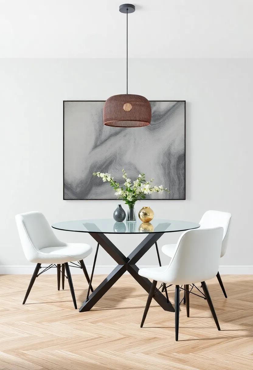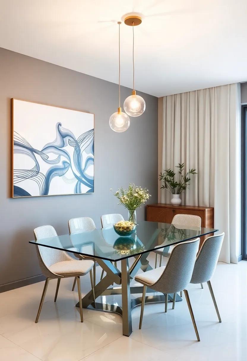 To enhance the impact of your artwork, think about strategic positioning and lighting.A gallery wall above the dining table or a colorful centerpiece can draw the eye, inviting conversation and admiration from guests. Using spotlights or soft pendant lights will accentuate these pieces, allowing their colors and forms to come alive during meals.Choose artwork that not only complements your glass table but also reflects your love for art—whether it’s abstract, botanical prints, or local artists’ work, the goal is to create a space that feels authentically yours.