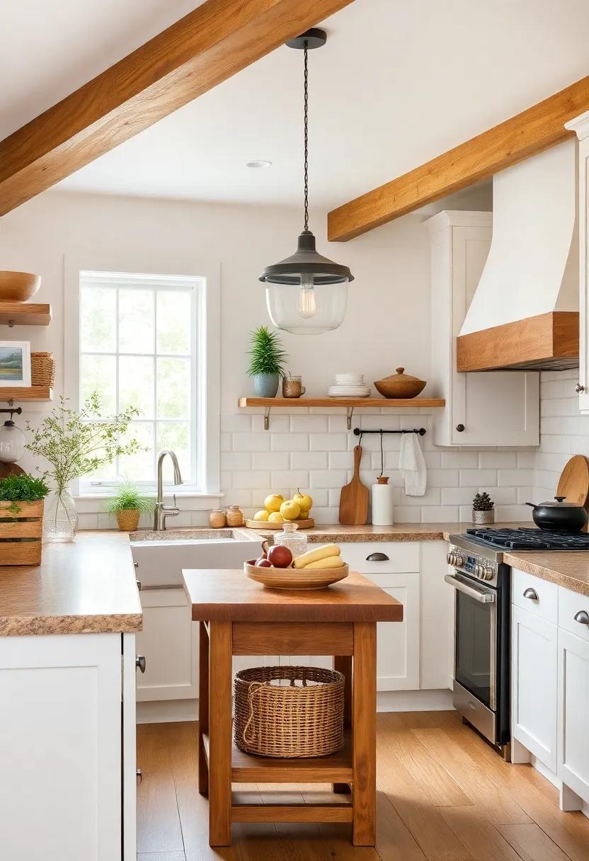 To create an inviting kitchen space that embraces the rustic charm of cottage living, consider incorporating a variety of textures through decor and materials. Layering is key; use soft linens, woven baskets, and rustic woods to introduce depth and warmth. Hang a linen apron on an old wooden peg beside vintage cookware to establish a lived-in feel. Consider these impactful elements:
