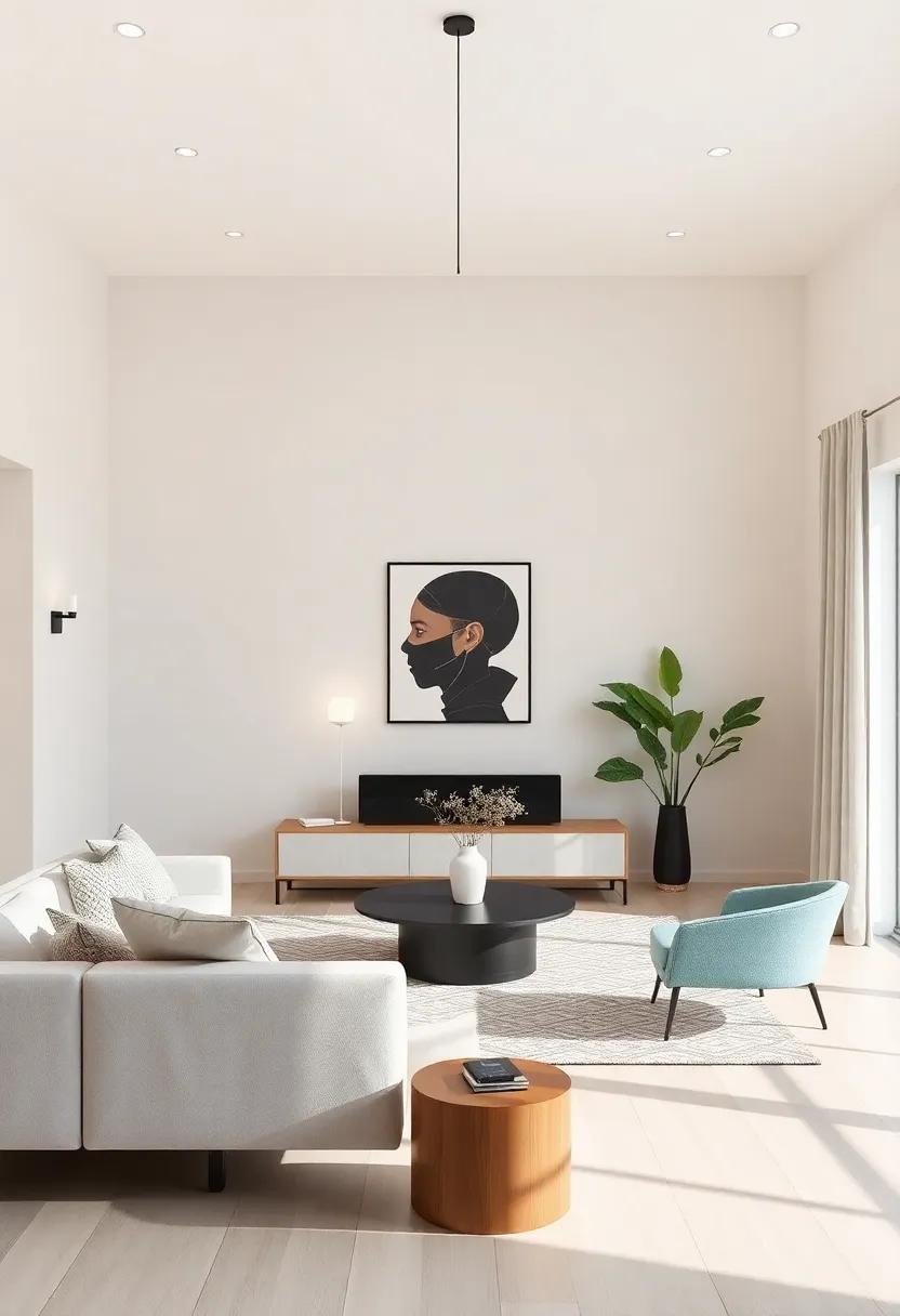 By choosing pieces that evoke emotion or spark conversation, you can create a living room that feels curated yet inviting, perfectly embodying the tenets of minimalist design with a touch of personal flair. Let these statement pieces define your space, serving as both art and functionality while upholding the beauty of simplicity.