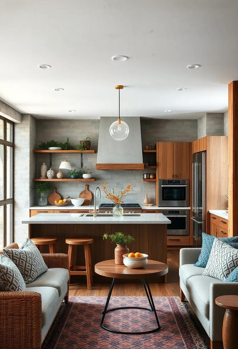 To establish a harmonious connection between your kitchen and dining area, consider utilizing open shelving and cabinets that complement your rustic theme. This not only enhances visual continuity but also allows for easy access to everyday items while showcasing beautiful dishware. Incorporate elements such as wooden beams, natural stone, or metal accents to knit the two rooms together seamlessly. By using similar cabinet finishes or a consistent color palette, you can create an inviting ambiance that encourages flow and interaction between spaces.