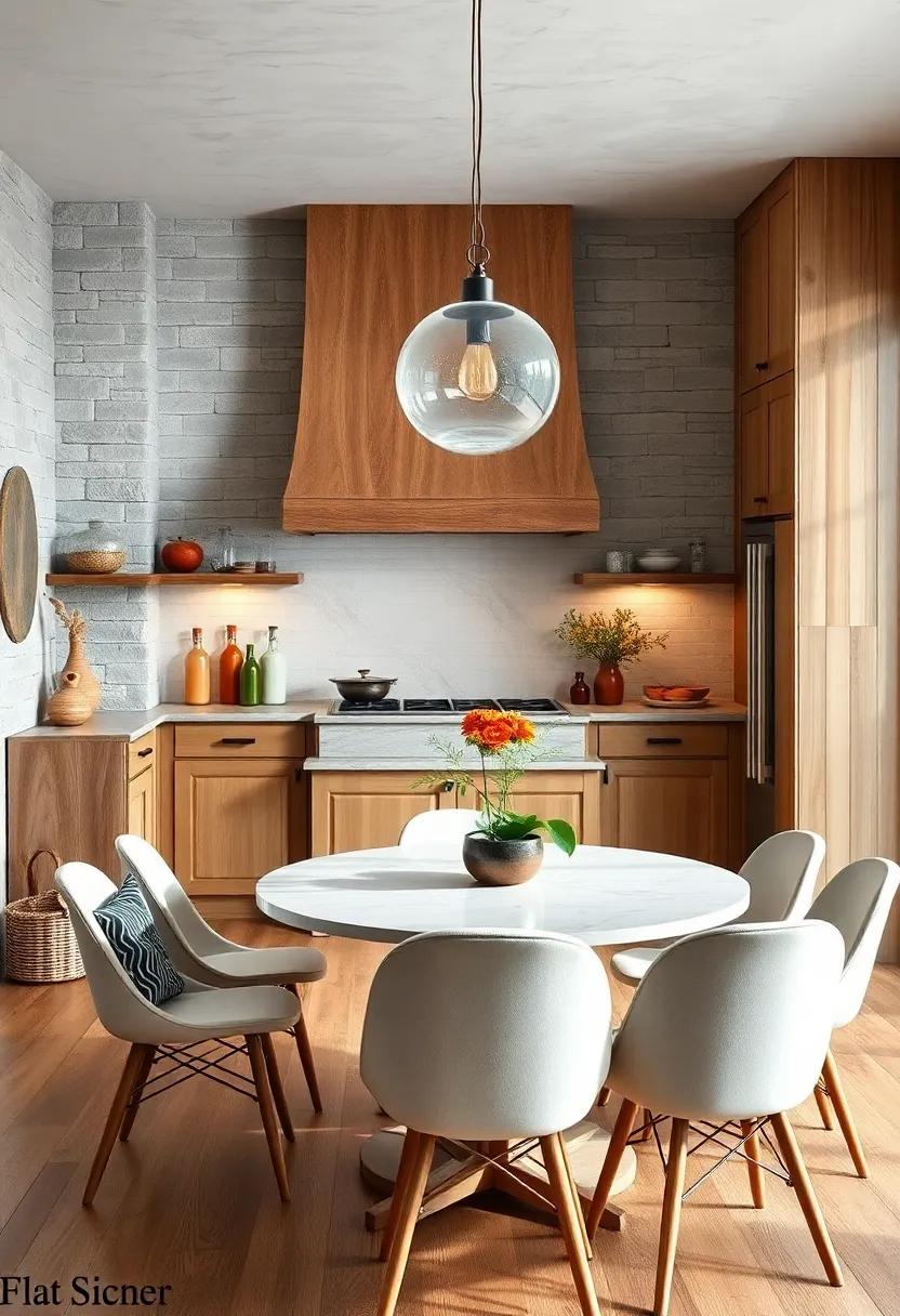 Additionally, integrating lighting solutions is crucial for maintaining coherence in your design. Pendant lights or chandeliers above the dining table that echo the materials of your kitchen cabinets can create a unified aesthetic. To further the sense of connection, consider a transitional bar or countertop that serves a dual purpose; it can function as a prep area in the kitchen while also providing a gathering spot for casual dining or entertaining. By strategically placing elements that bridge both areas, you enhance functionality and foster a sense of warmth and welcome in your home.