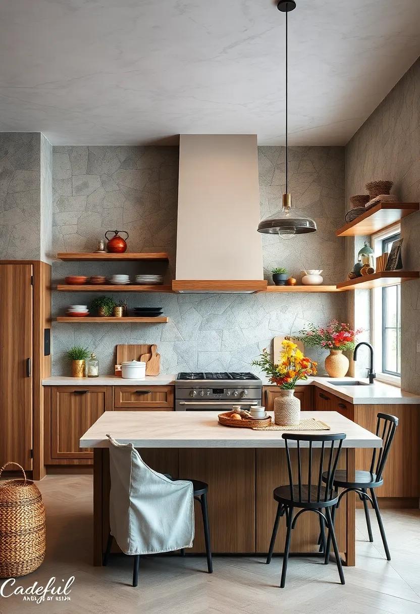 - Open Shelving: Showcase your ceramic dishes against the rustic backdrop.