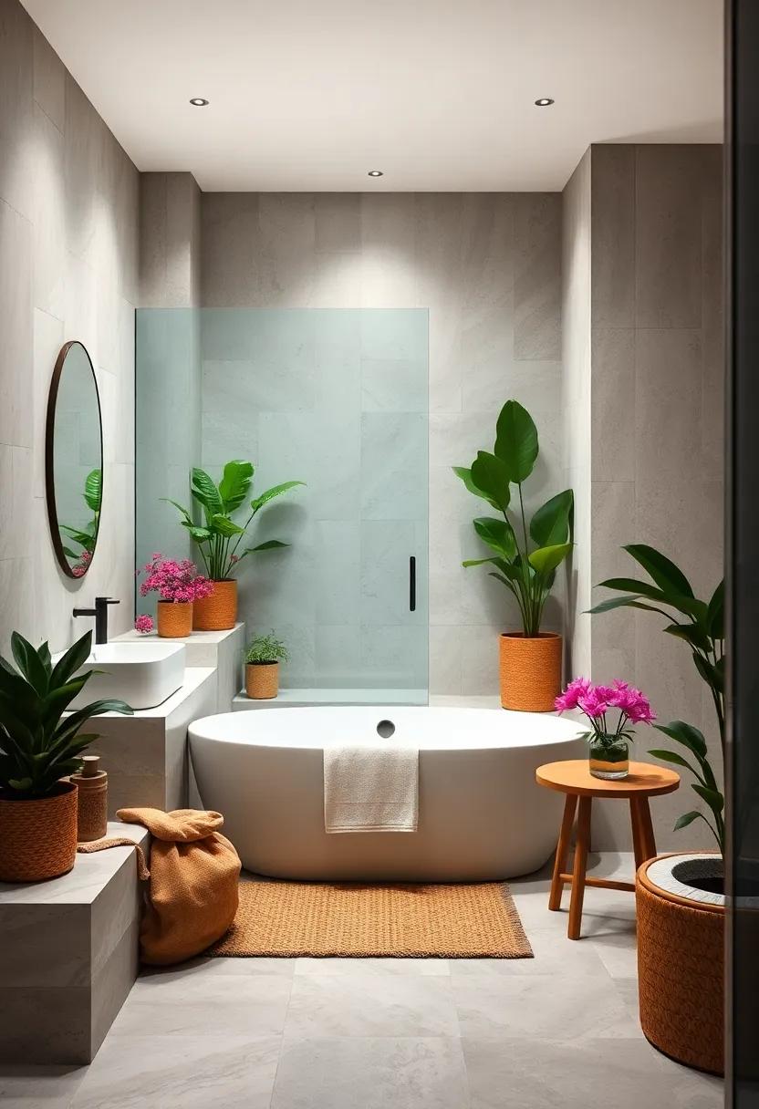 Integrating plants into your bathroom can effortlessly transform the space into a serene sanctuary. When selecting greenery, choose varieties that thrive in humid environments and low light. Consider snake plants, peace lilies, or pothos, which not only add a touch of nature but also purify the air. To enhance this botanical experience, arrange plants in varied heights and textures using decorative planters—think matte ceramic, glossy glazed finishes, or natural stone. The contrast will create visual interest while maintaining the minimalist aesthetic.