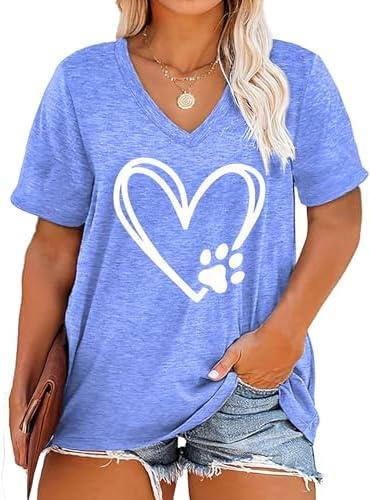 Plus Size Love Heart Shirts Women V Neck T Shirts Short Sleeve Tshirts Summer Tops
