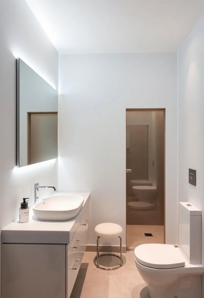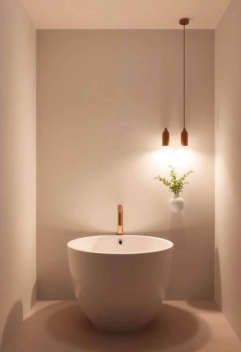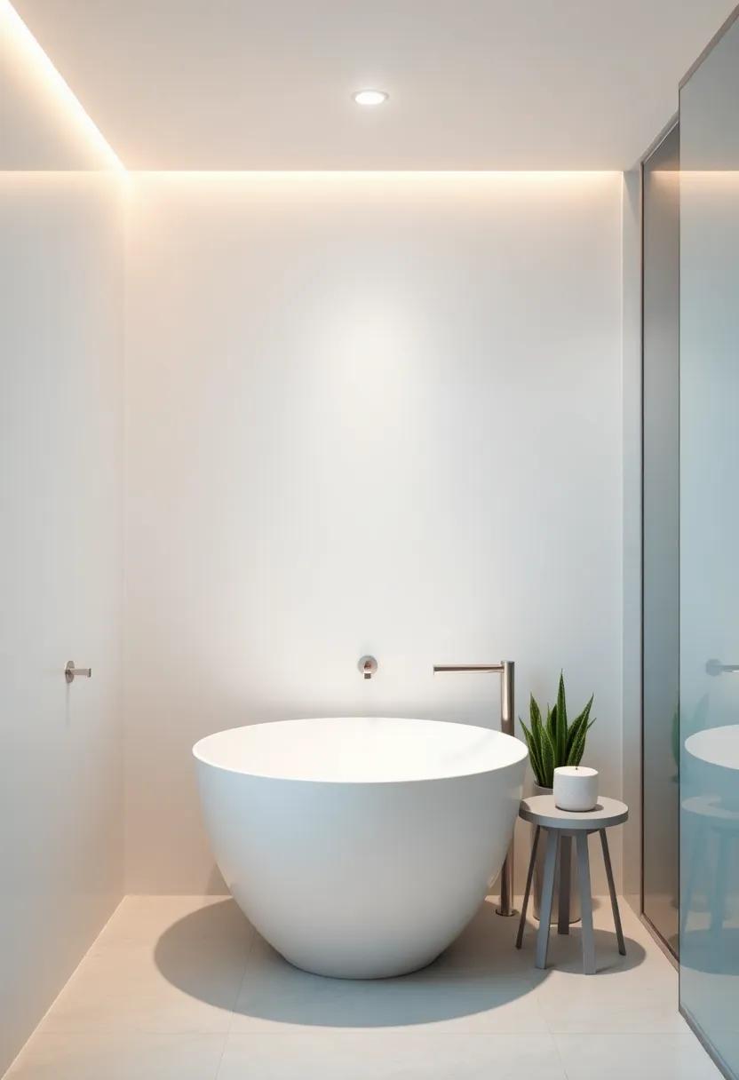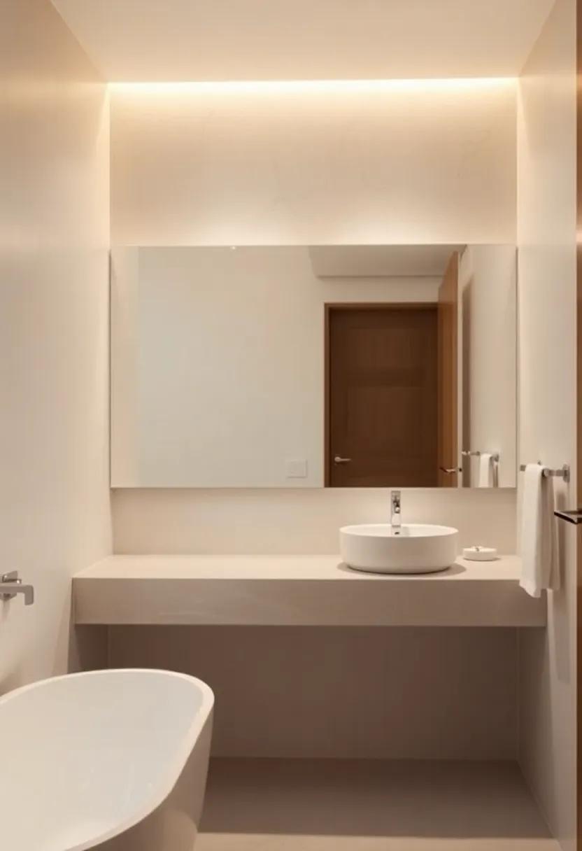 To further accentuate a minimalist decor, explore the use of LED strip lights as they can be discreetly placed for an ethereal glow along shelves or under vanities. This technique not only highlights your design choices but also offers a warm ambiance perfect for unwinding. Additionally, create a cohesive look with a subtle color palette; opt for fixtures in brushed nickel or matte black to maintain a sleek, understated elegance. The interaction of light with simple surfaces, paired with minimalist decor, results in a harmonious retreat that promotes relaxation and rejuvenation.