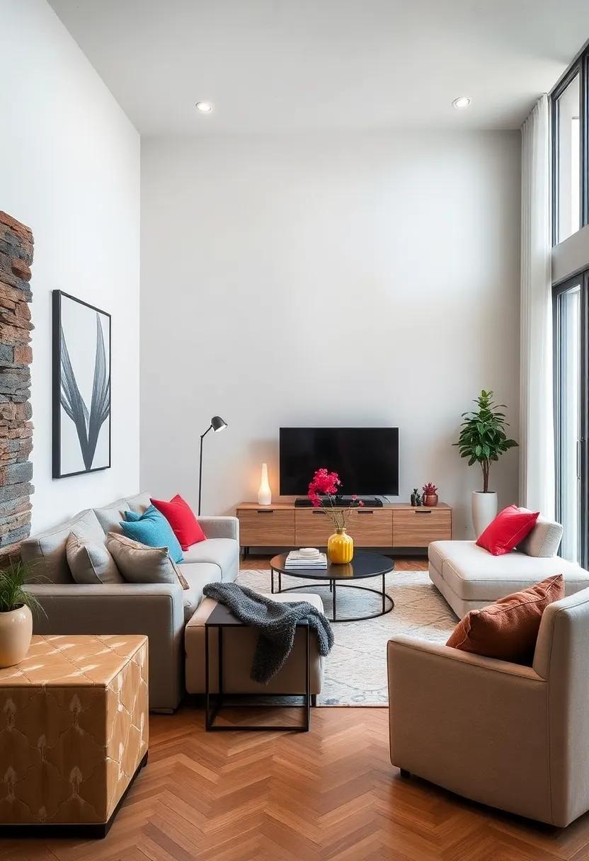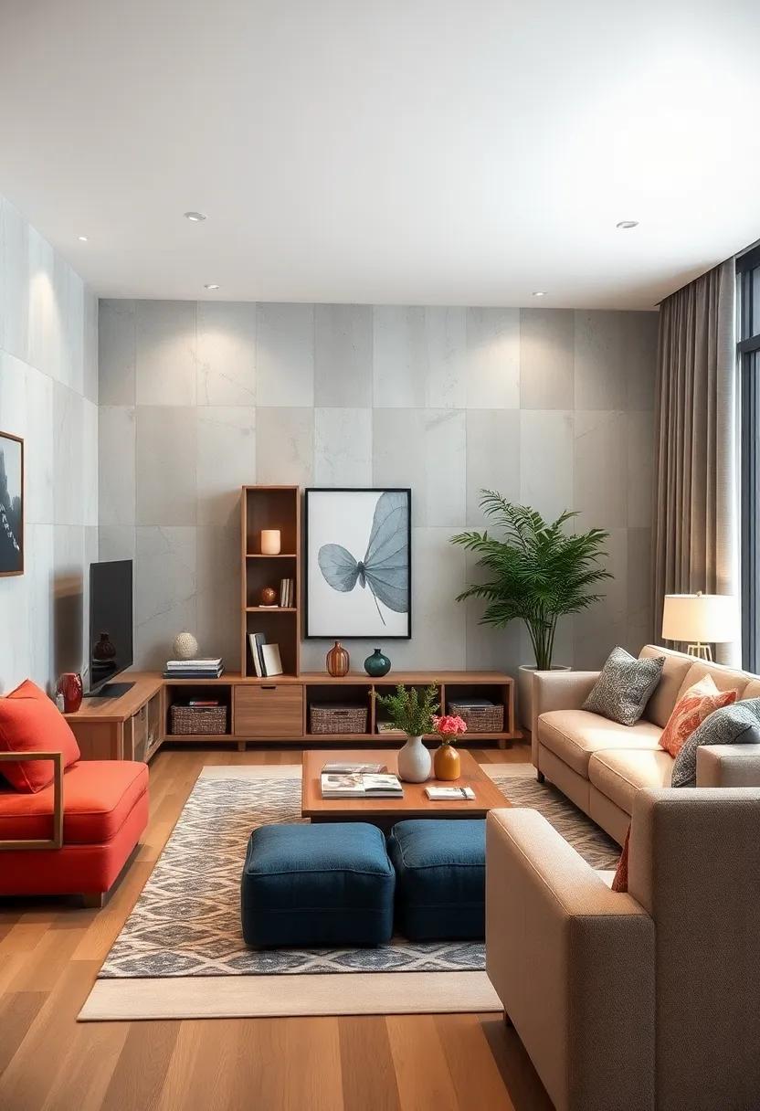 When considering design choices for your small living room, the texture of fabrics and materials can significantly influence the overall aesthetic.Soft fabrics like velvet can add a touch of luxury, while natural materials such as woven rattan or jute bring an organic warmth that balances the modern elements of your decor. Integrating these materials through stylish storage cubes not only serves a functional purpose but also enhances your room’s visual intrigue. Imagine a geometric-patterned cube upholstered in rich, textured fabric that serves as both a seating option and a striking focal point. The play of light on textured surfaces can create visual depth, making your room feel larger and more inviting.