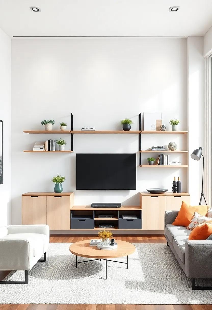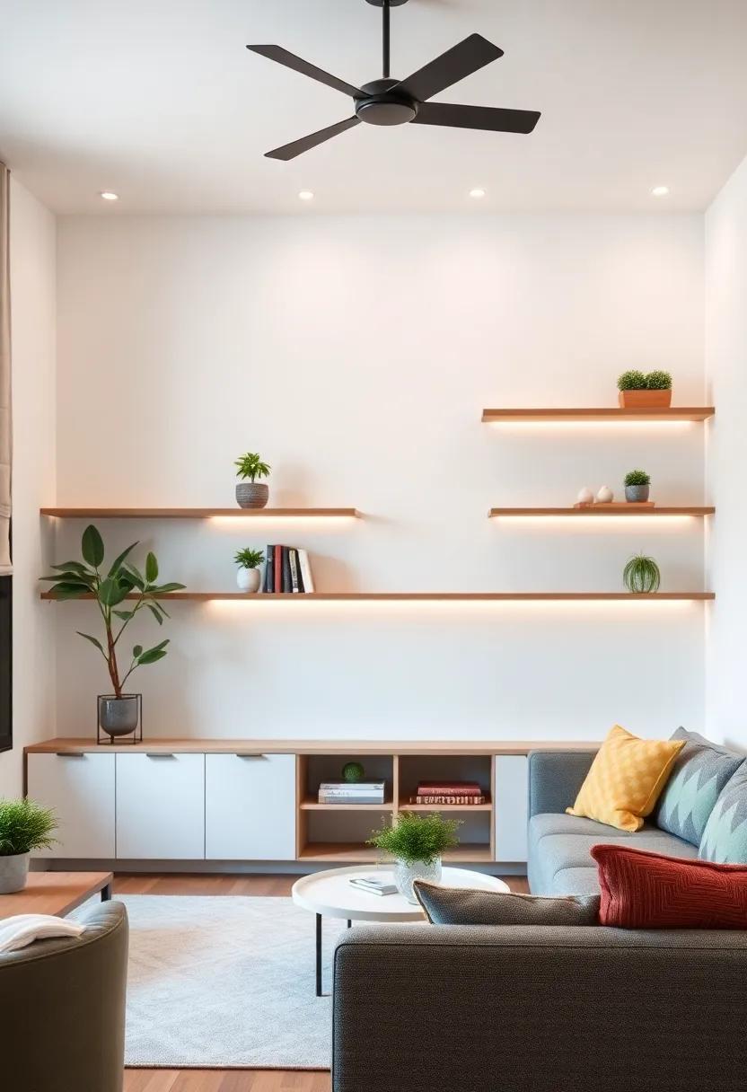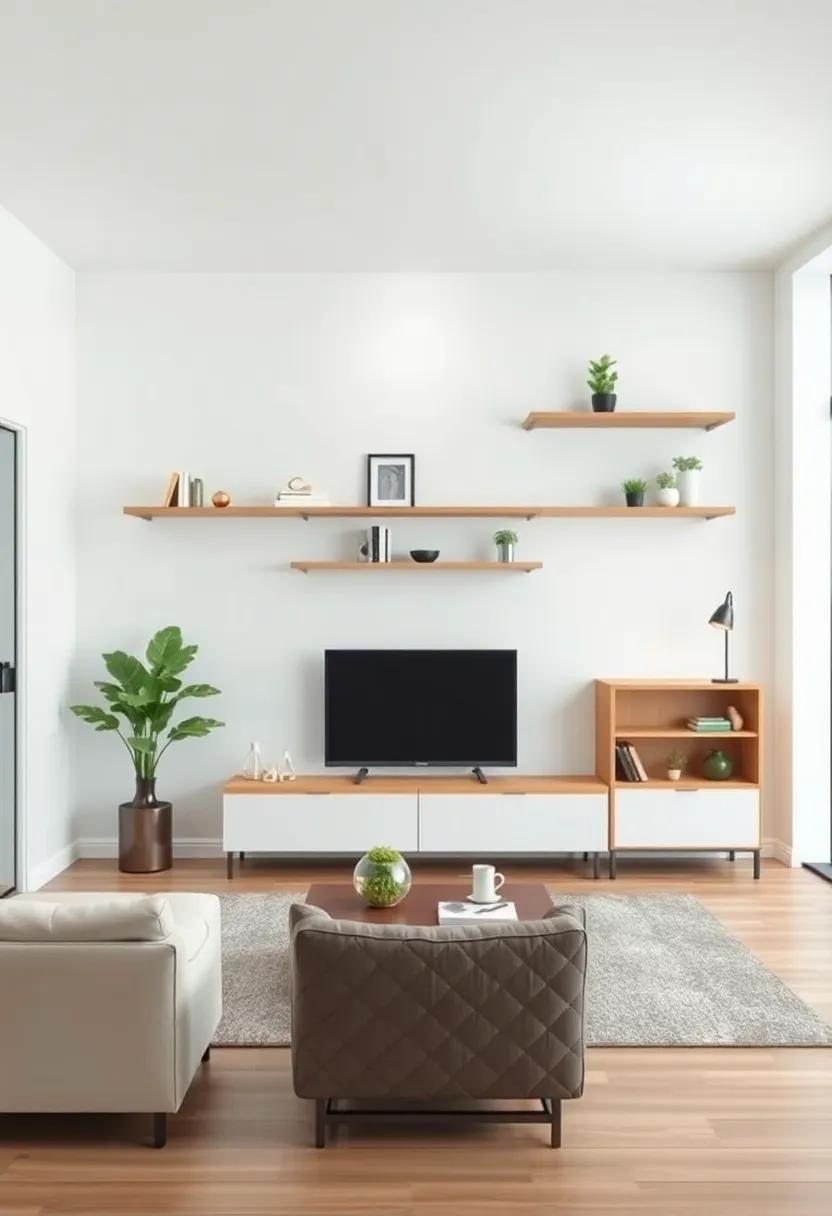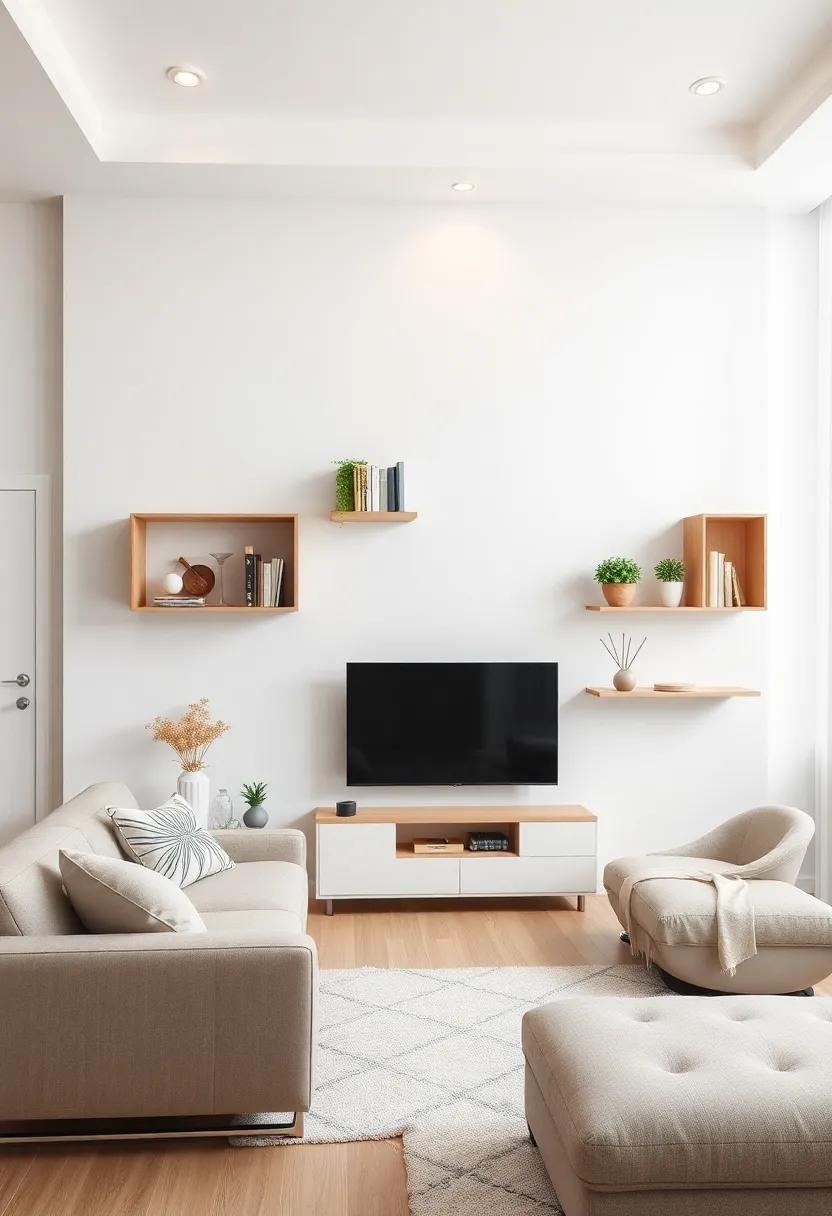 By focusing on these design principles, you can transform your wall shelves into an eye-catching centerpiece that maximizes both space and style in your apartment living room.