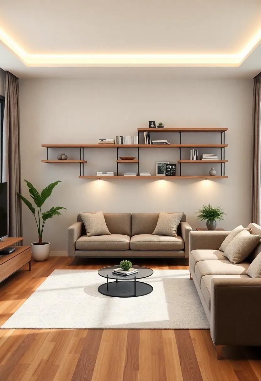 As we draw the curtains on our exploration of stylish apartment living room layouts, it’s clear that maximizing your space doesn’t have to come at the cost of aesthetics. Wall-mounted shelves offer a perfect blend of form and function, allowing you to showcase your personality while keeping your living area organized and open.Whether you choose sleek designs that blend into the walls or bold statements that draw the eye, these versatile pieces are key to transforming a compact space into a haven of creativity and comfort.