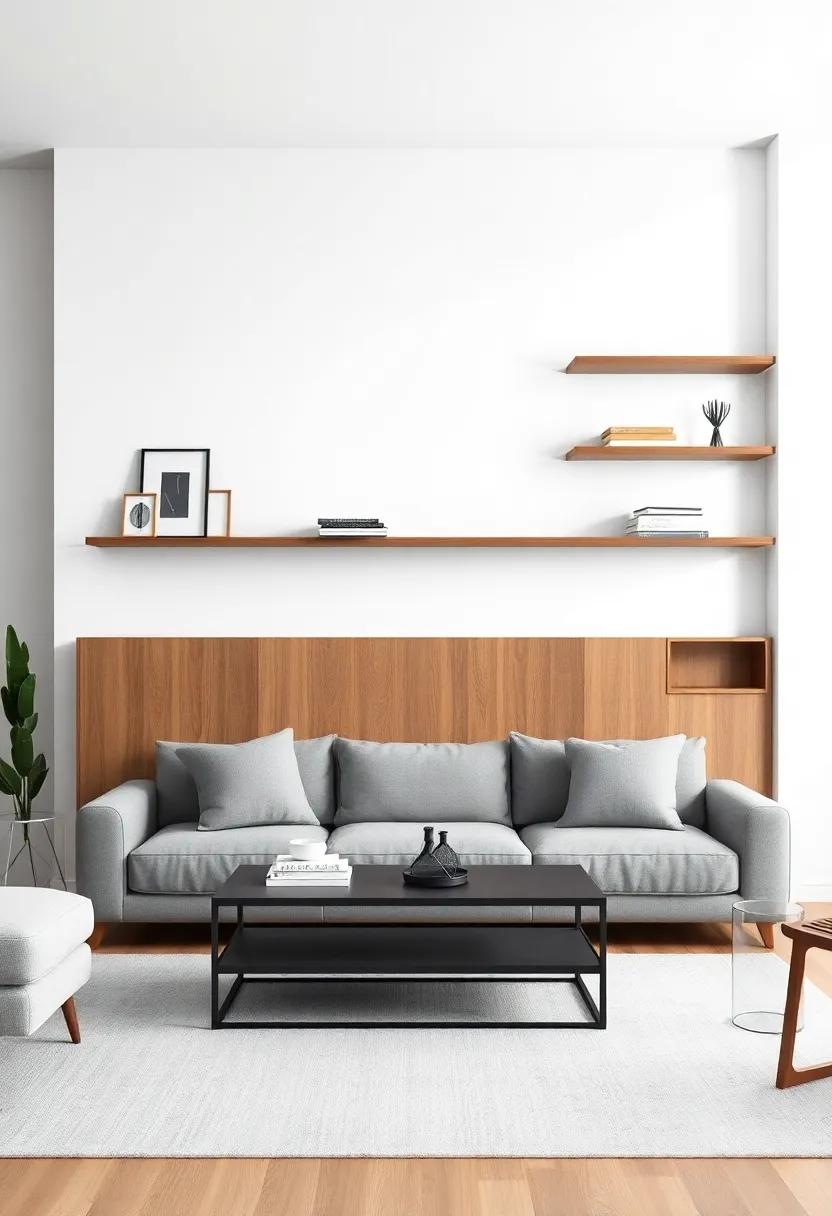 Pair these wall-mounted designs with a thoughtful layout to further enhance your living space. Consider a modular shelving system that can be rearranged or expanded as needed. Here’s an example of how to effectively organize your wall-mounted shelves alongside other furniture: