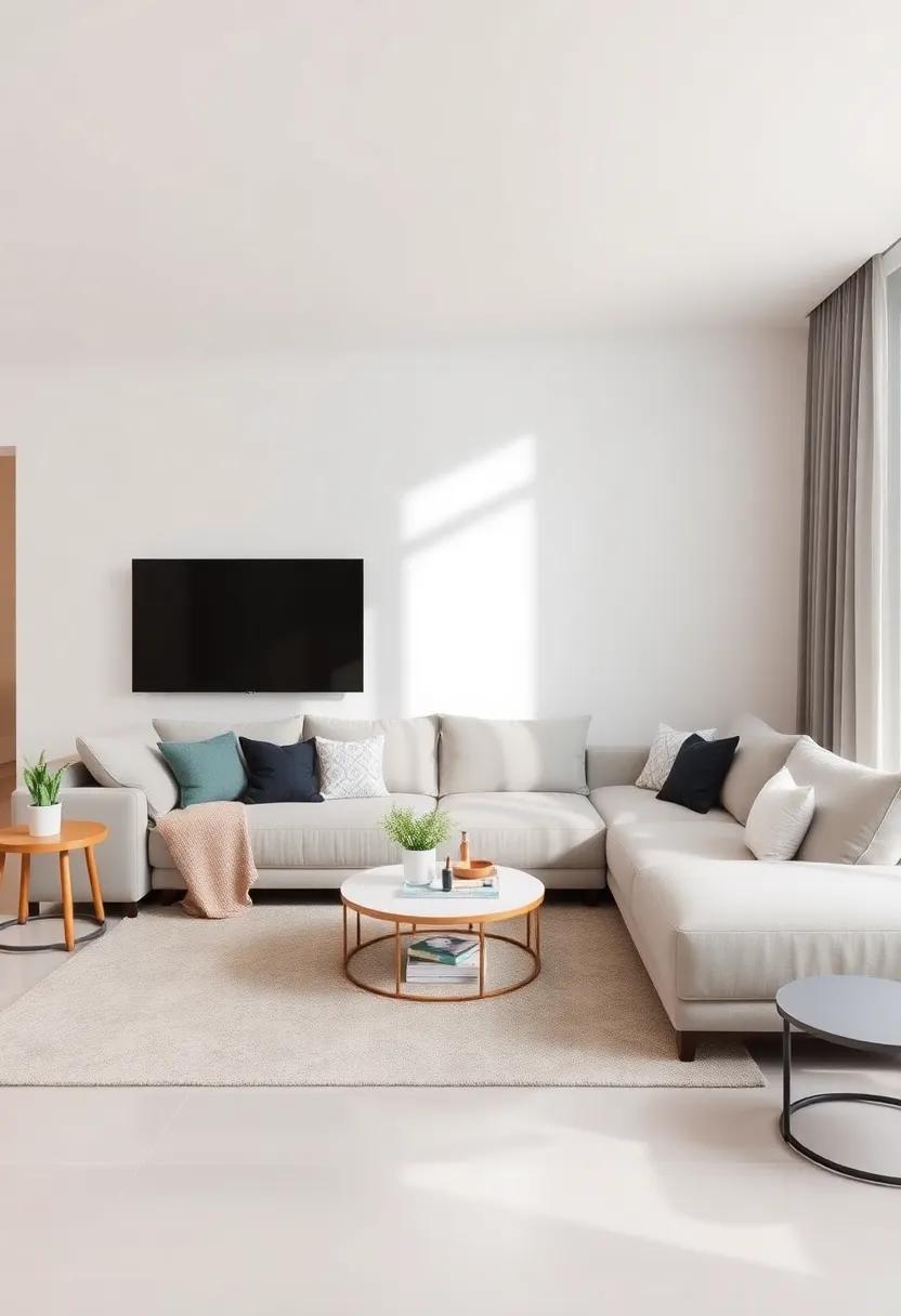 - Coffee tables: Opt for a unique coffee table that invites conversation; round shapes can soften the lines of a rectangular sectional.