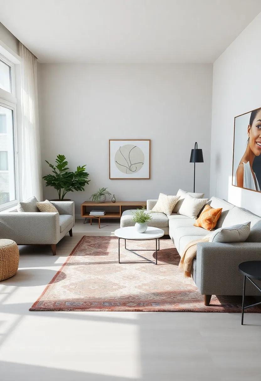 Layering rugs and textiles can dramatically enhance the visual appeal of your living room, especially with a large sectional sofa as the focal point. Consider using a combination of large area rugs paired with smaller, complementary rugs to create an inviting and textured floor space. Natural fibers like jute or sisal can serve as an excellent base,providing warmth while allowing for the layering of more vibrant or patterned pieces on top.This not only adds depth but also defines the seating area, making it feel cozier and more intimate.