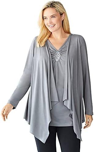 Woman Within Women’s Plus Size Layered Look Long Top with Sequined Inset