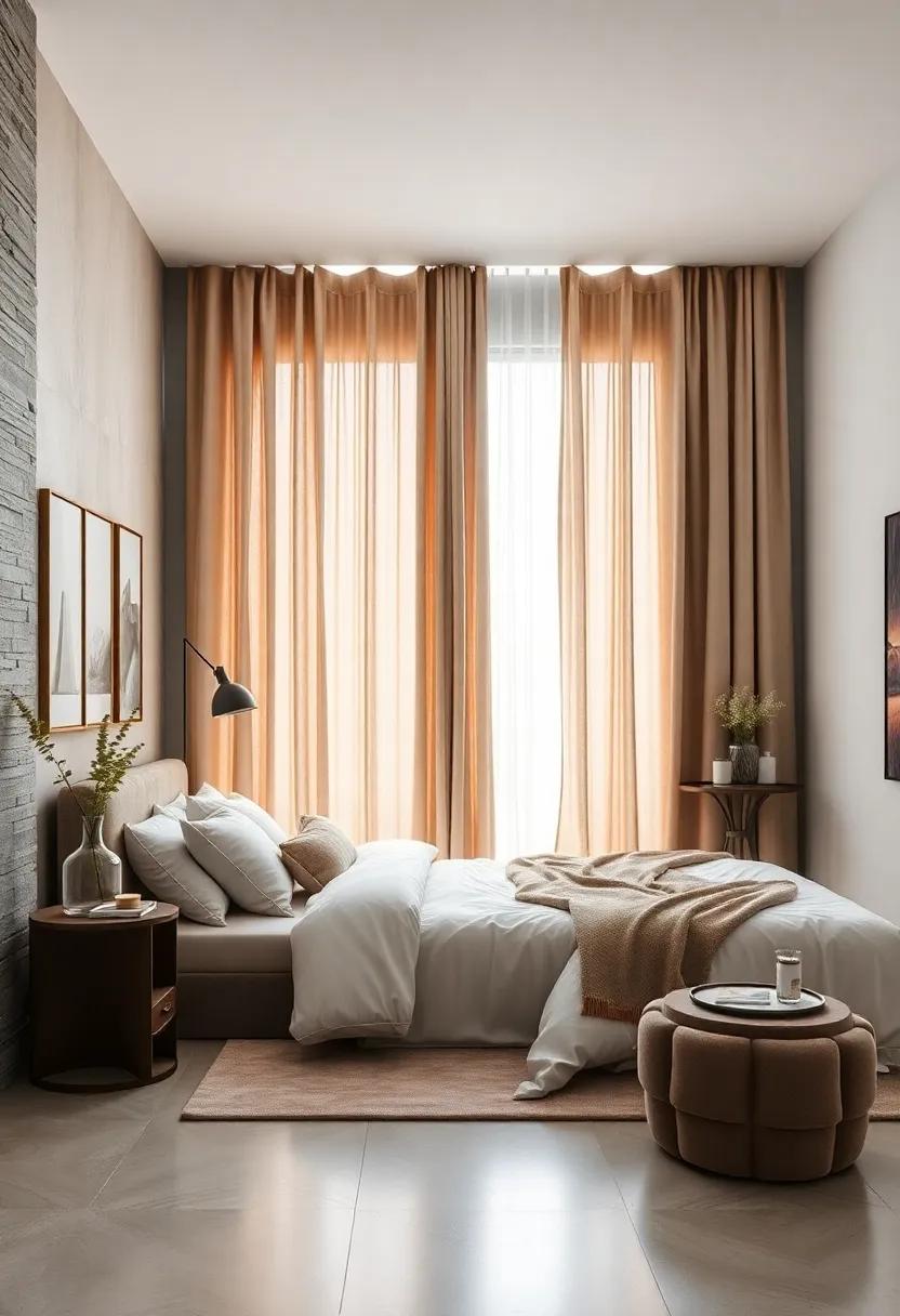 To achieve a dreamy atmosphere in your bedroom, consider layering delicate sheers over richer fabrics. This combination not only adds depth and texture but also creates an ethereal backdrop that invites soft, filtered light. Voile and organza are perfect choices as they gently sway with the breeze, giving your space an airy feel. You might also explore various hanging techniques, such as: