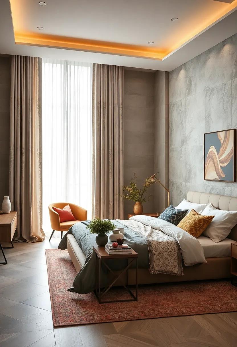 This artistic interplay not only enhances the visual appeal of your bedroom but also promotes a cozy and relaxing atmosphere, transforming it into a true retreat.