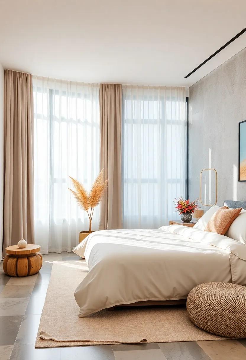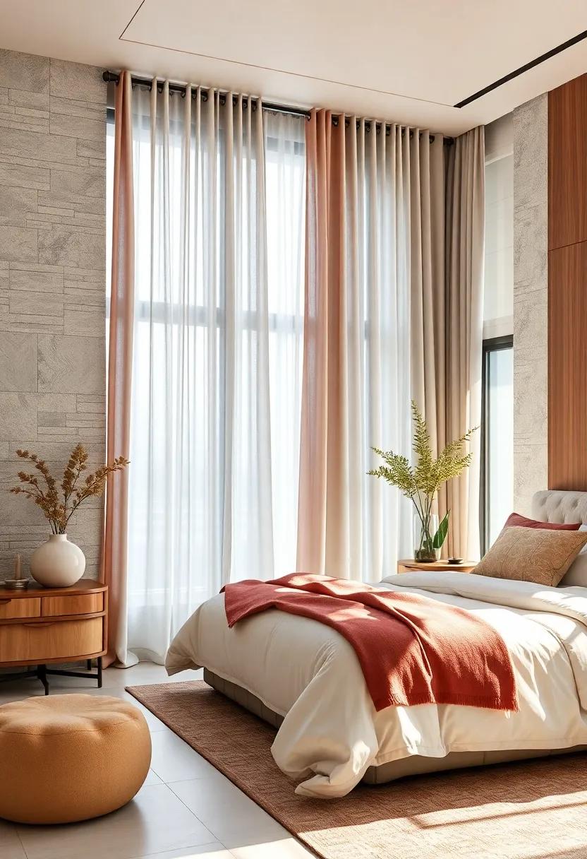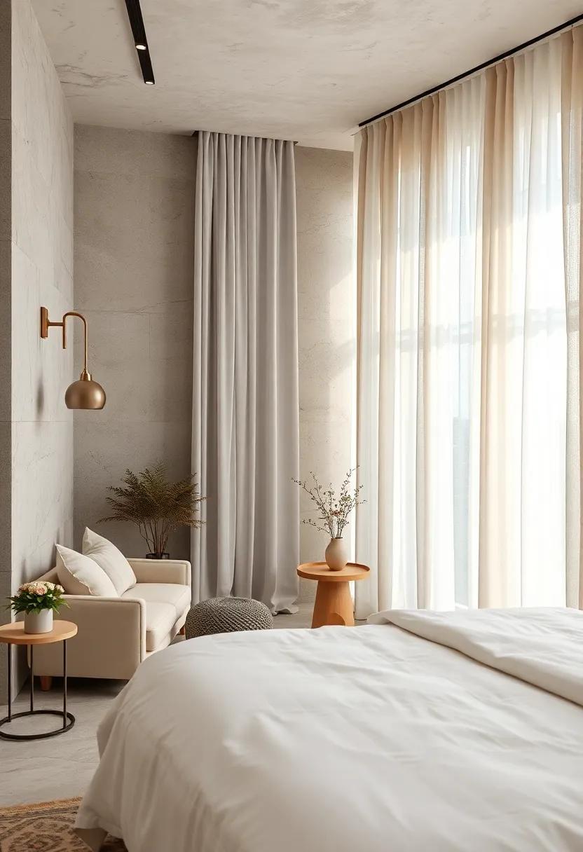 Striking a perfect balance between privacy and an open, airy ambiance can transform your bedroom into a serene retreat. Choosing the right materials for your light-filtering curtains is essential. Consider sheer fabrics that allow soft light to cascade in while still maintaining a level of seclusion. Fabrics like voile, linen, or bamboo are excellent choices, as they gently diffuse harsh sunlight, creating a dreamy glow.To enhance this effect further, opt for curtains that hang from a ceiling-mounted track, which can draw the eye upward, making the room feel more spacious and inviting.