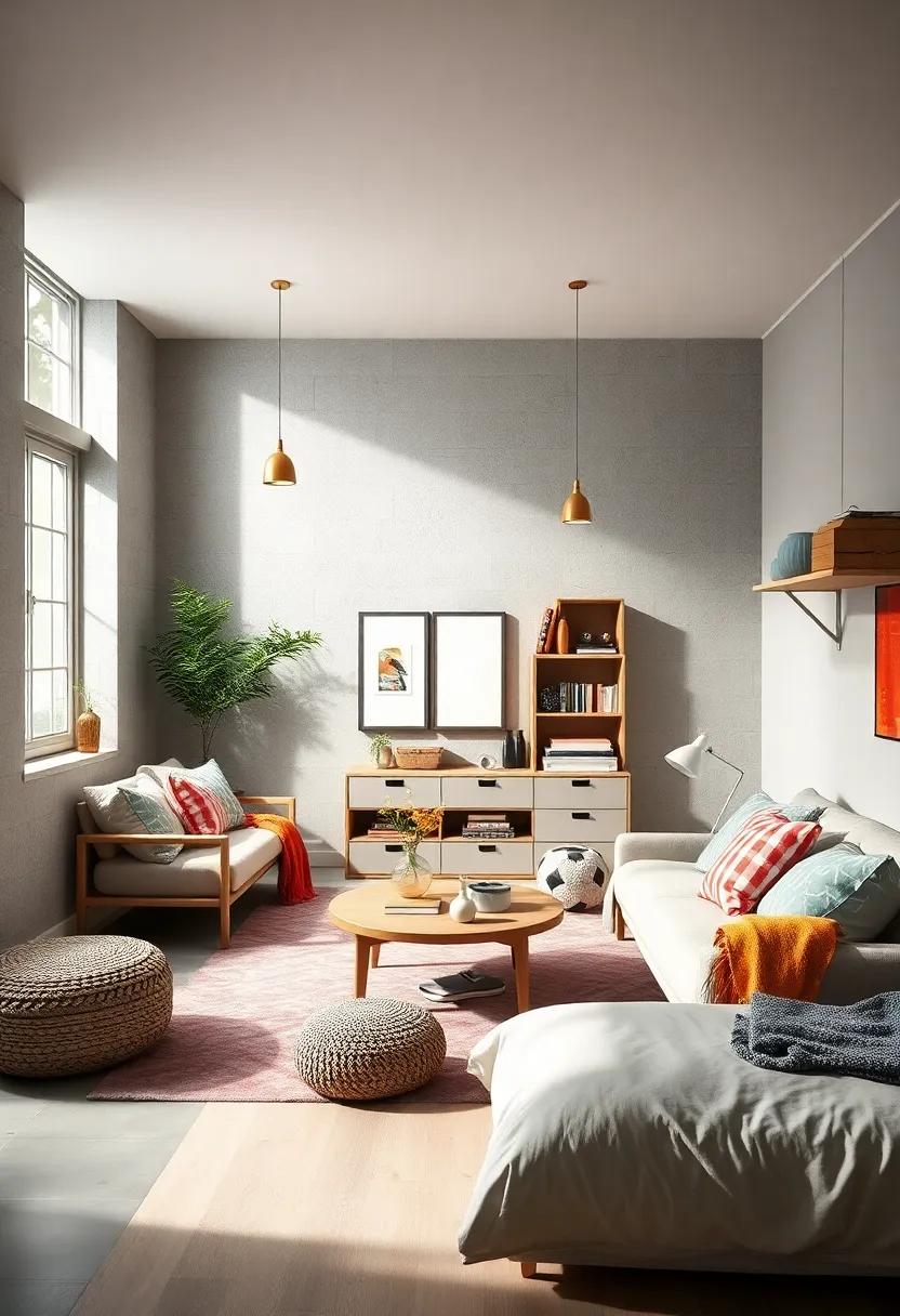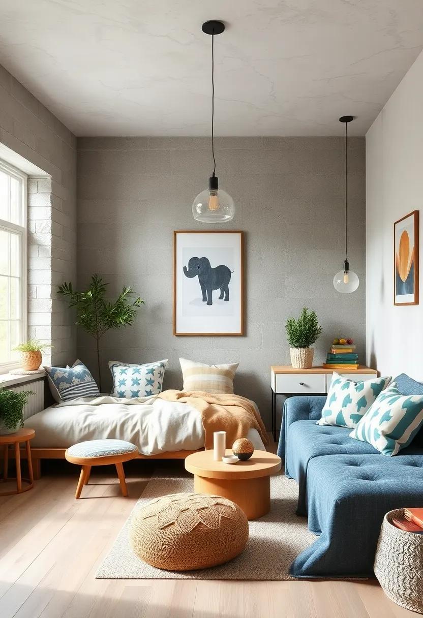 To make your design cohesive, choose a color palette that balances neutral tones with bursts of brighter shades.A simple color scheme can be enlivened with accents of fun colors through accessories like cushions, artwork, and decor items. Incorporating multi-functional furniture not only saves space but also brings in creative designs—like a storage ottoman that doubles as a playful seat. Here are a few key elements to consider: