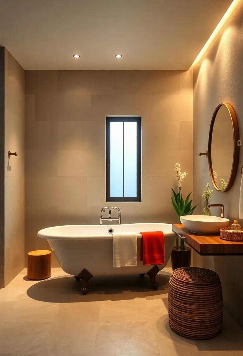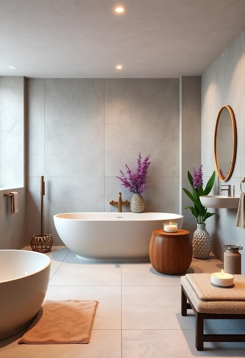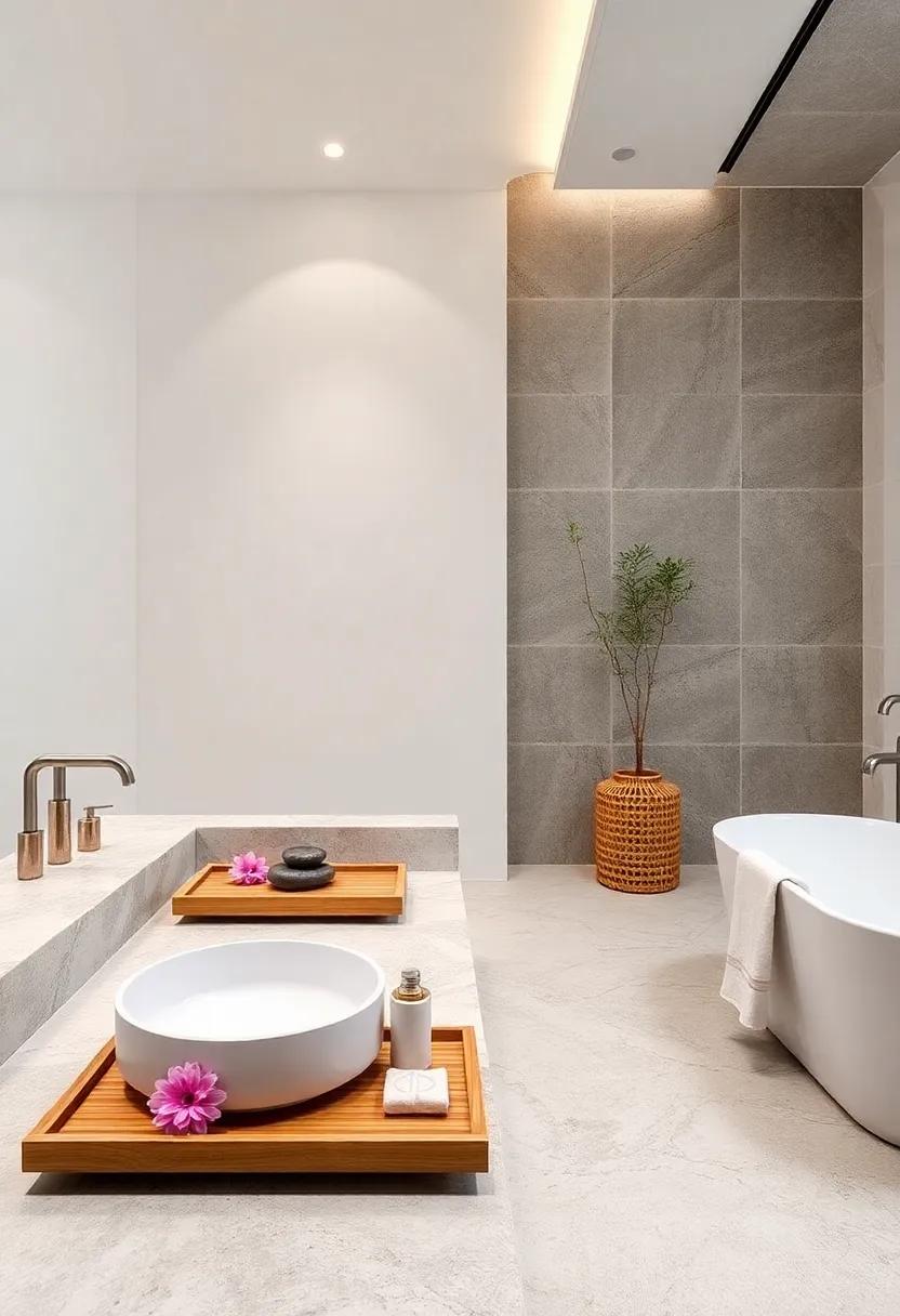 Spa-Like Accessories: Incorporate bamboo trays, decorative stones, and stylish containers for personal items to add a touch of serenity