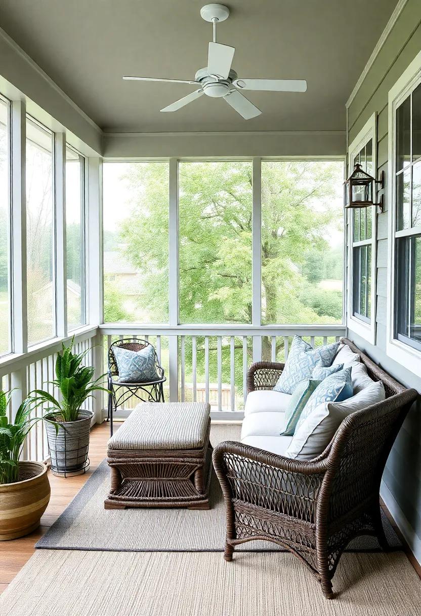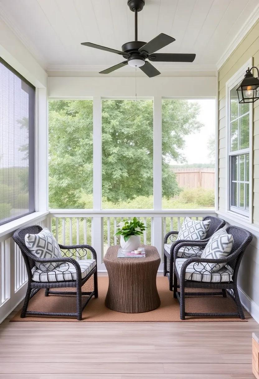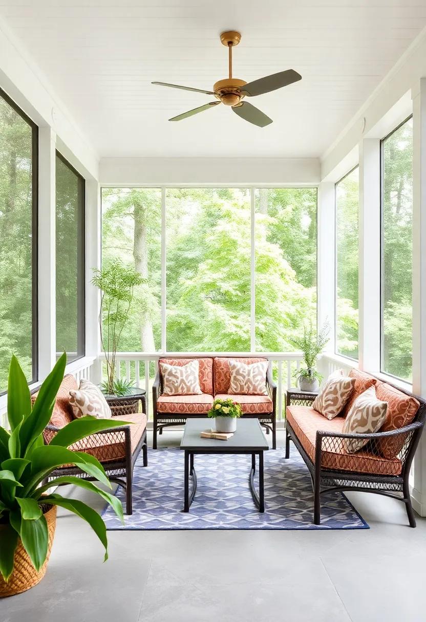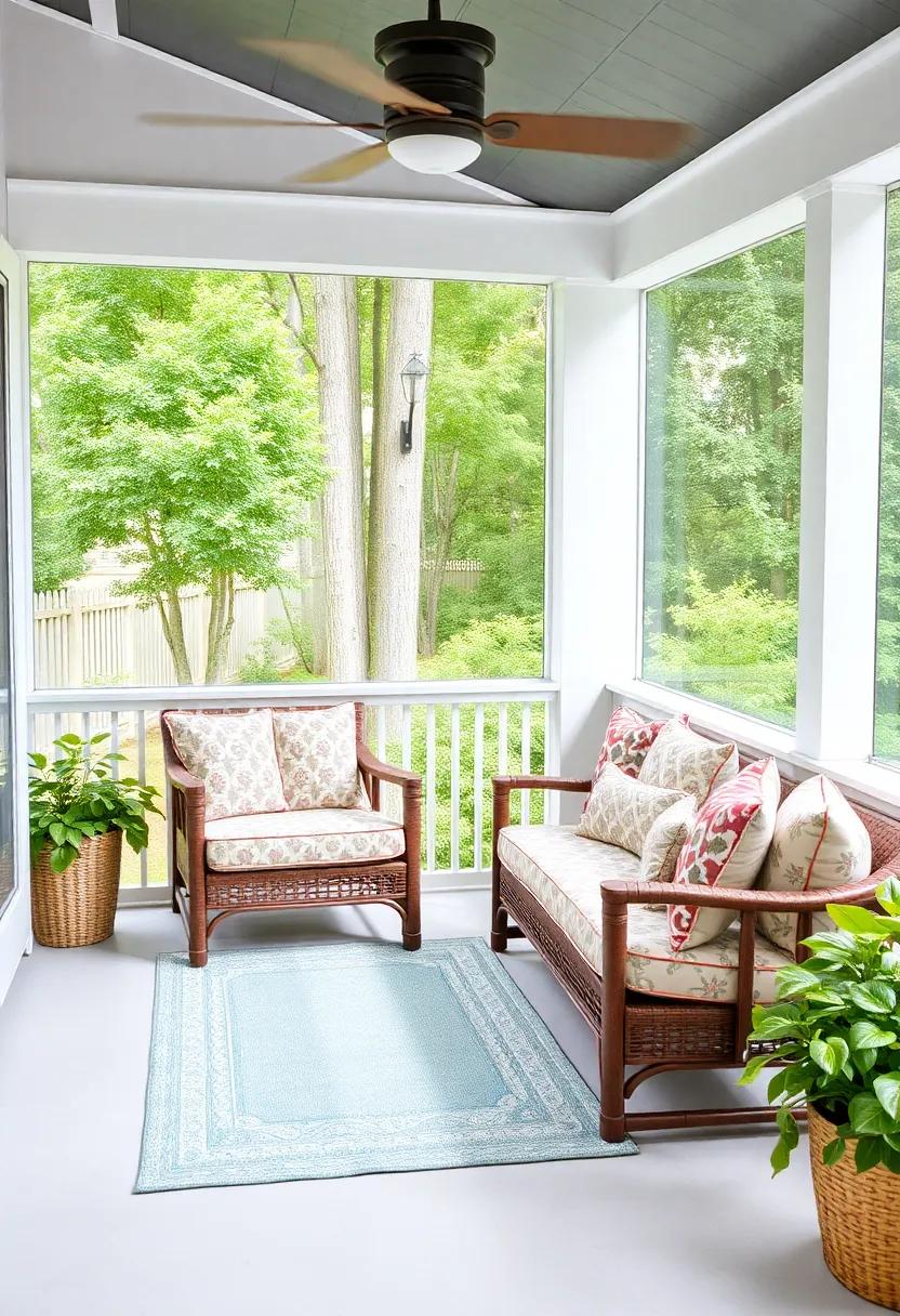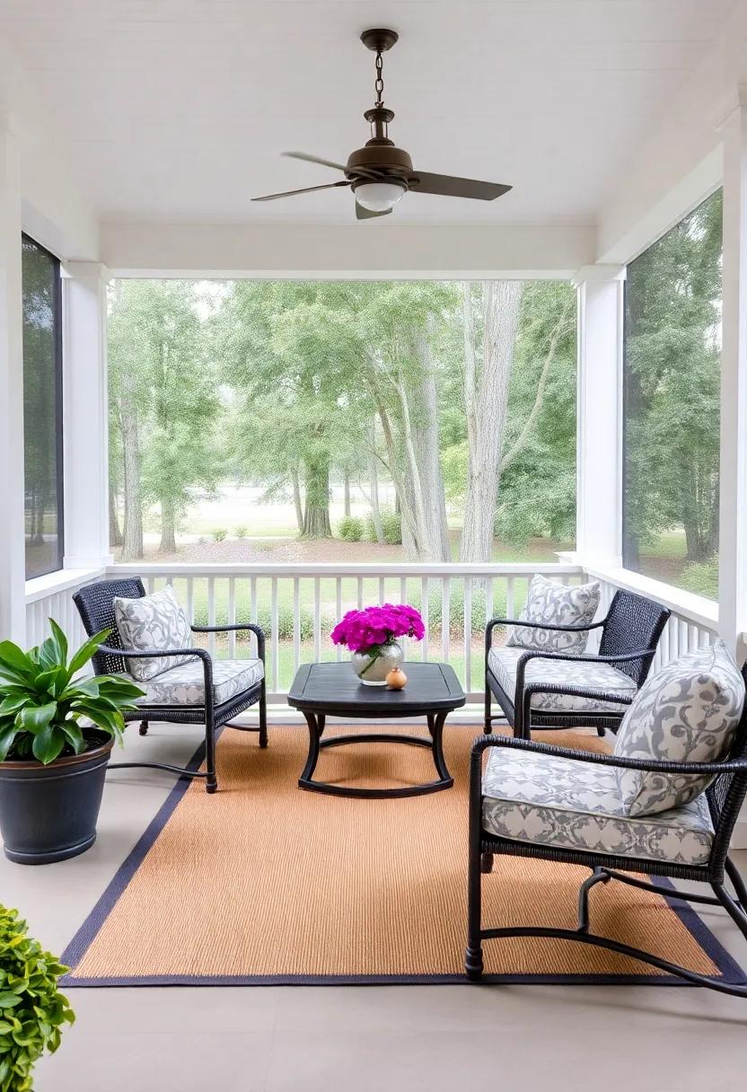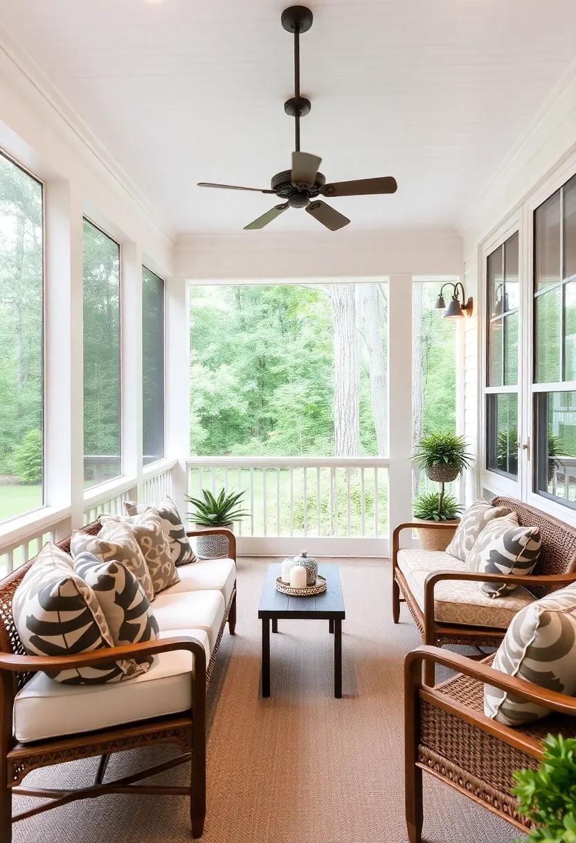 One of the most appealing aspects of a screened porch is its ability to blend the comforts of indoor living with the natural beauty of the outdoors. By strategically placing your furnishings and decorative elements, you can create an inviting atmosphere that feels cohesive and well-integrated. Incorporate patterned cushions that echo the colors and textures of the garden, drawing the eye from the greenery outside to the cozy seating within. Consider mixing and matching designs that reflect seasonal changes—floral motifs in spring, vibrant hues in summer, and warmer tones in fall. This not only enlivens the space but also establishes a seamless continuity between your indoor and outdoor environments.
