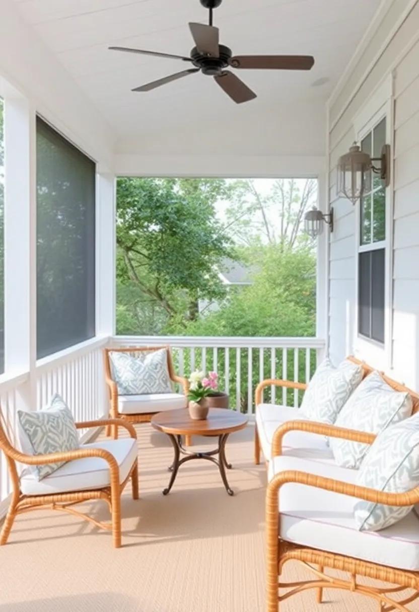 To enhance the transition, think about using translucent drapes or sheer panels that frame the openings of your porch, allowing sunlight to filter through while keeping insects at bay. You might also want to introduce natural materials such as wicker or wood that evoke a sense of the outdoors, paired with elements like potted plants or hanging tendrils to emphasize the connection further. Set up a small table for outdoor dining or relaxation, and adorn it with vibrant candle holders to create a warm ambiance during evening gatherings. Utilize the following simple table to visualize how to best arrange your space: