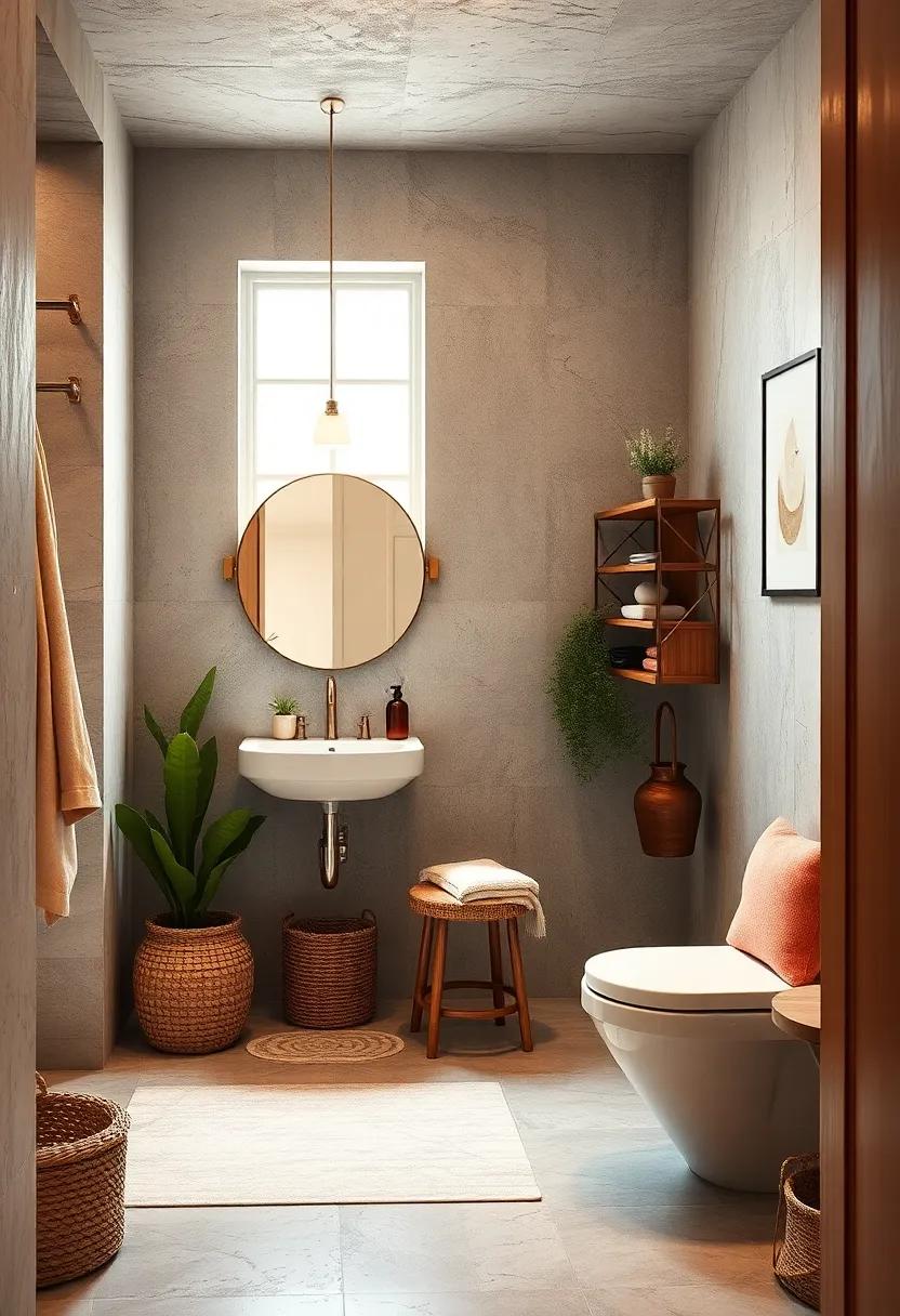 Accessories provide another effective way to establish focal points. Choose decorative mirrors that not only serve a practical purpose but also reflect light and enhance the perception of space. A mirror with an ornate frame can become a stylish statement piece. Plants, such as small potted succulents or hanging planters, can introduce natural beauty and freshness. Combine these elements with decorative storage solutions, like wicker baskets or open shelves, to create a harmonious blend of functionality and charm throughout your small bathroom.