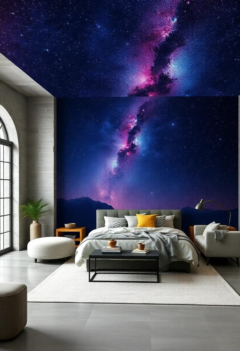 | galaxy Scenes | Mesmerizing swirls of colors that mimic the Milky Way. | Feature wall or as an accent behind furniture. |
