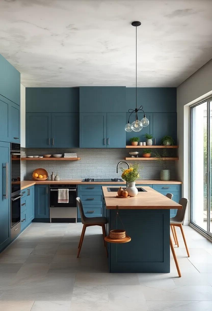 To further enhance the interplay between blue and wood, consider the finishes and treatments you use. A matte finish on walnut can provide a rich, deep tone that feels inviting, while a glossy maple surface can offer a contemporary touch that reflects light beautifully. Pair your cabinets with fixtures in complementary metals like brass or copper to enrich the color palette. If you’re considering wall treatments, explore the following combinations that play up the wood and blue palette: