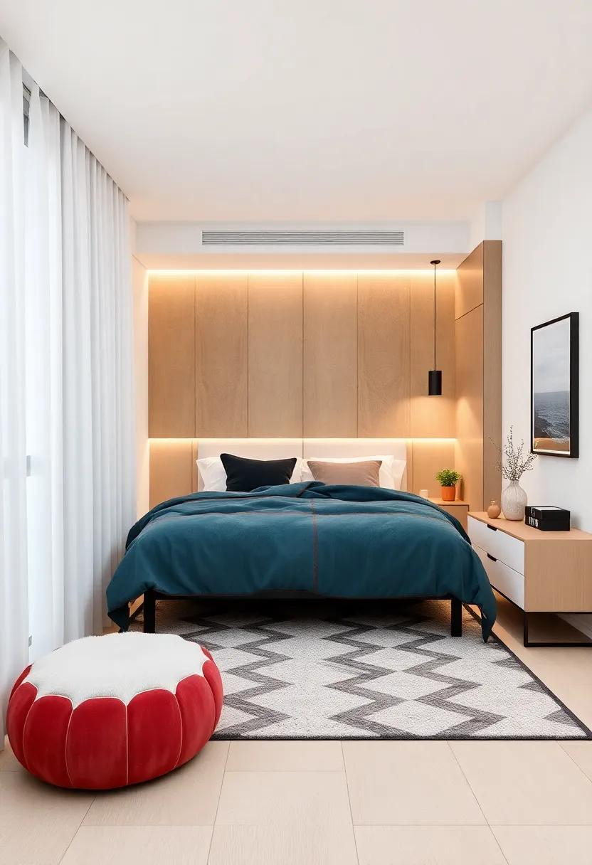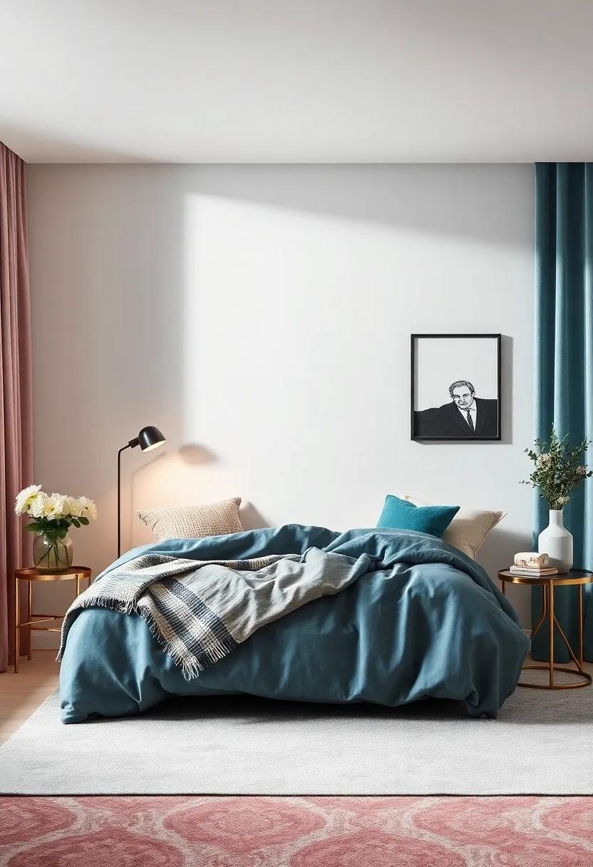 - Statement bedding in contrasting shades that enhance the overall color scheme