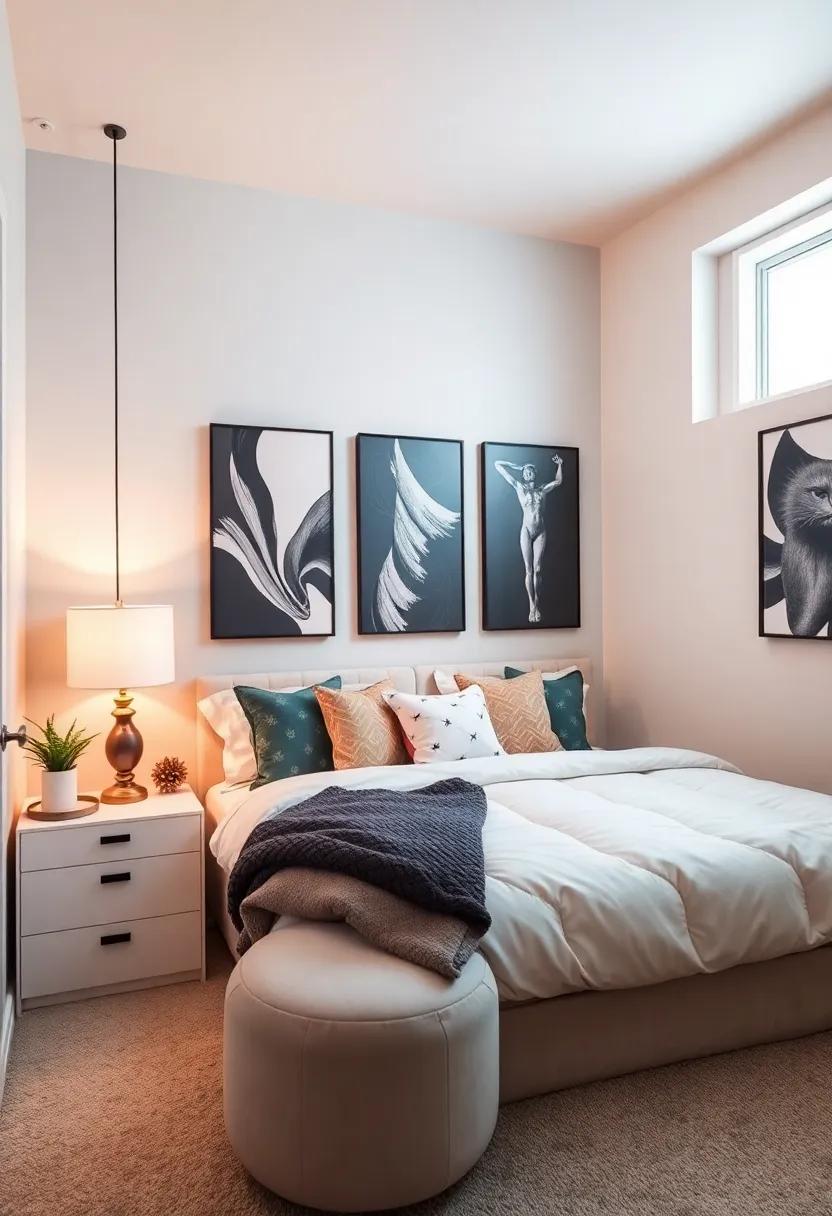 | Artistic Wall Hangings | Painted canvases or tapestries. | Sets a personal tone. |